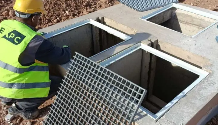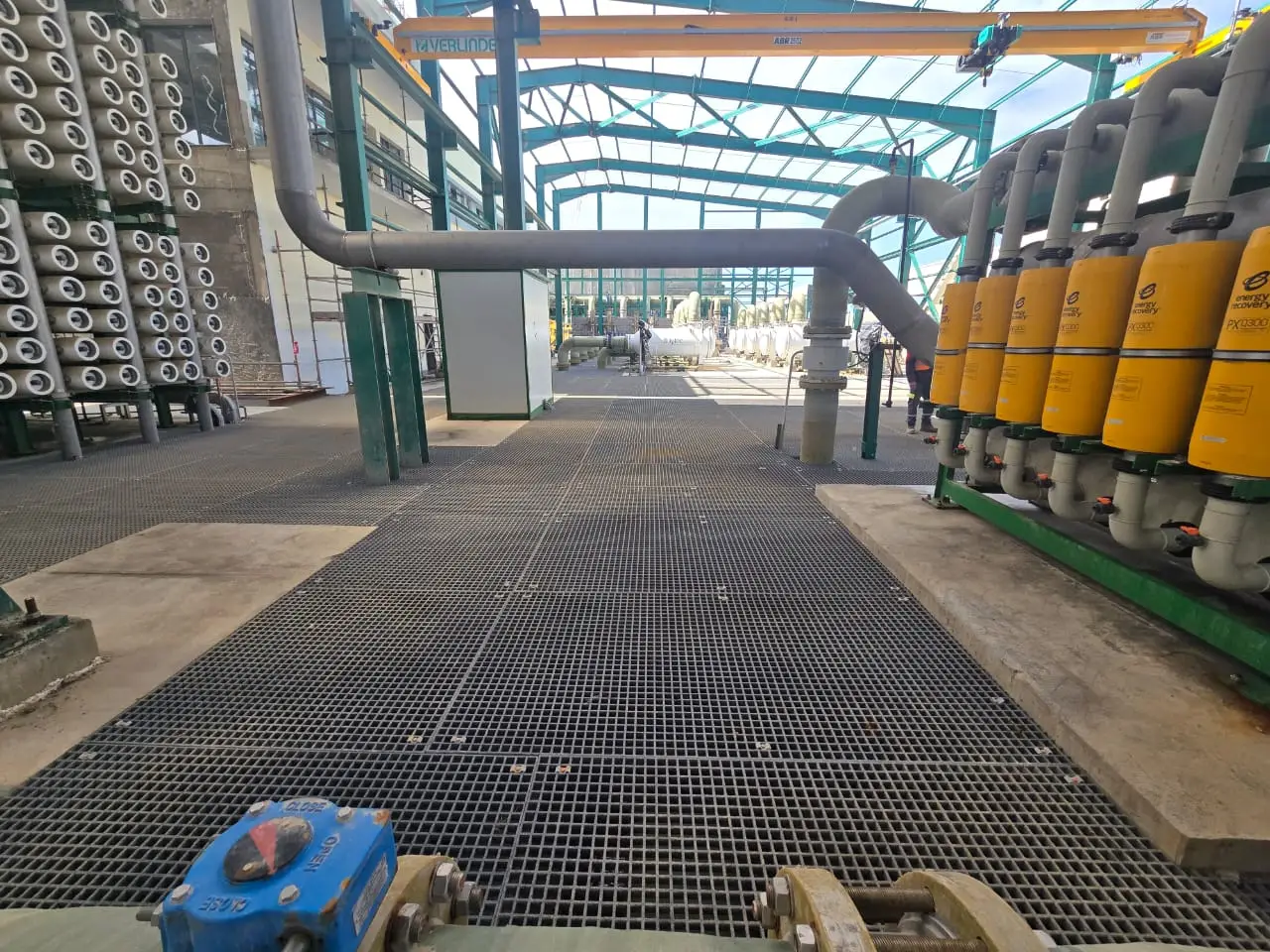 Caillebotis, garde-corps, escaliers, échelles, échelles à crinoline, passerelles, plateformes et trappes de visite en PRV avec la meilleure résistance à la corrosion.